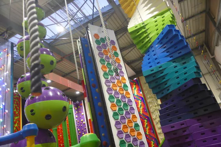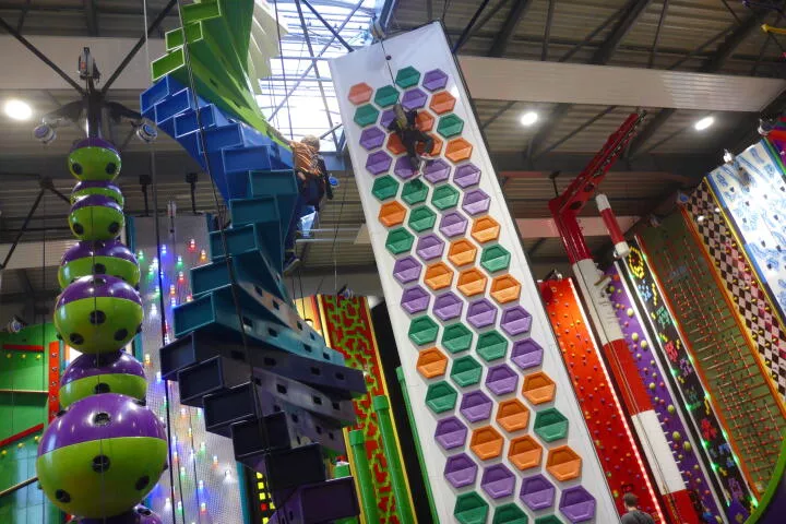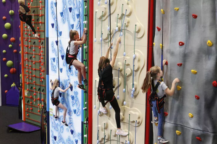 In der HAPIK Kletterhalle Frankfurt erwartet dich eine gigantische Kletterwelt voller Abwechslung und Action! Neben zahlreichen bunten Kletterwänden findest du den Extra-Adrenalinkick beim Sprungturm und der Freifall-Rutsche. Ein besonderes Highlight ist der Hochseilgarten, der dich auf einen außergewöhnlichen Rundgang durch die Kletterarena führt – mit völlig neuen Perspektiven und einem ganz eigenen Klettergefühl.