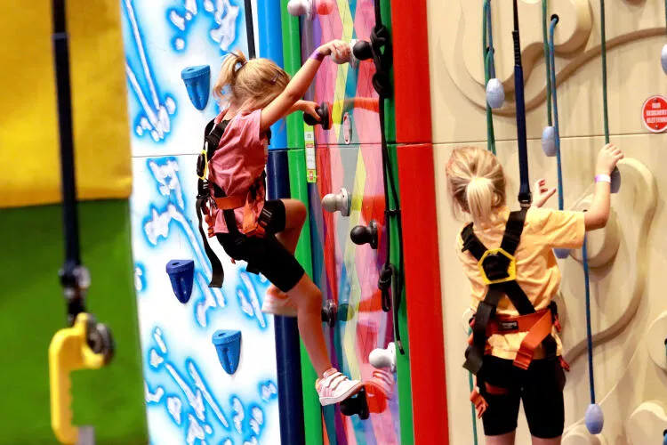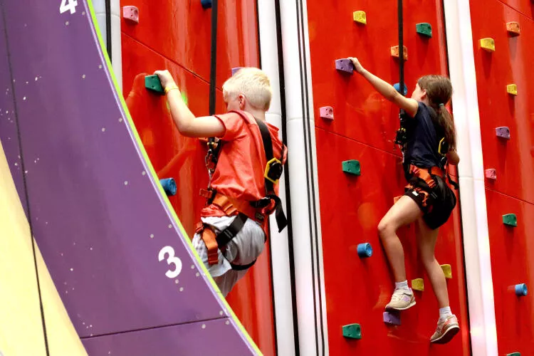 Vielzahl an thematischen Kletterwänden, vertikalen Challenges und Hochseil-Elementen. Eine sportliche Aktivität zum Teilen mit der ganzen Familie. Auch ideal für eure Geburtstagsfeiern.