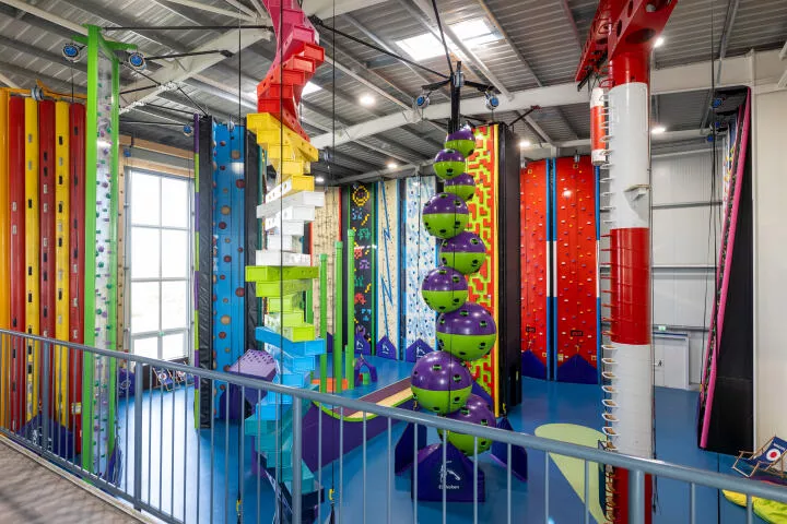 Vielzahl an thematischen Kletterwänden, vertikalen Challenges und Hochseil-Elementen. Eine sportliche Aktivität zum Teilen mit der ganzen Familie. Auch ideal für eure Geburtstagsfeiern.